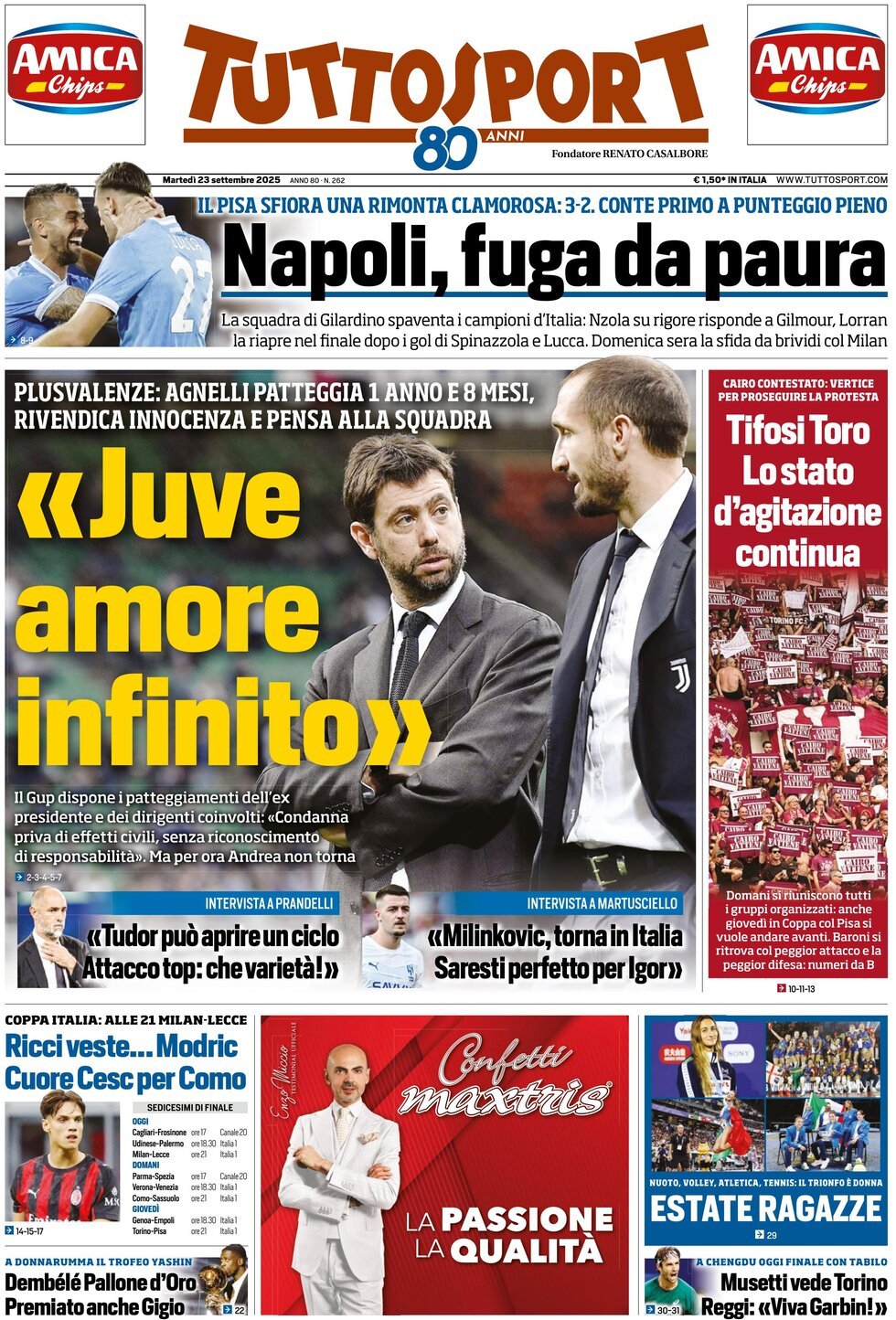 Un saluto dalla Redazione di CalcioComo a tutti i nostri lettori: partiamo, come consuetudine, dalle prime pagine sportive di oggi